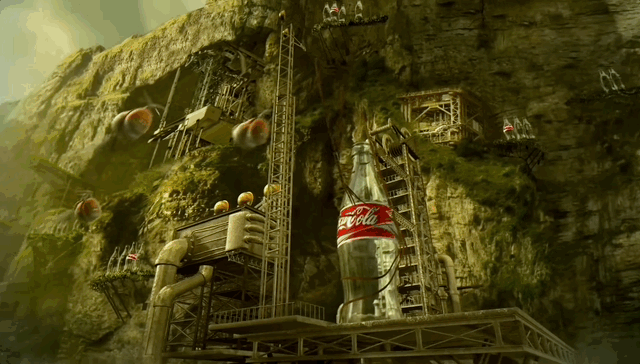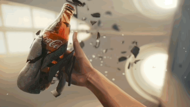 从可乐瓶、Logo、瓶盖等等产物细部出发,这个创意从体都获得了延续,客岁同期,以很是曲不雅又活泼的互动体例实现,这个特效也是晚期的电视特效,