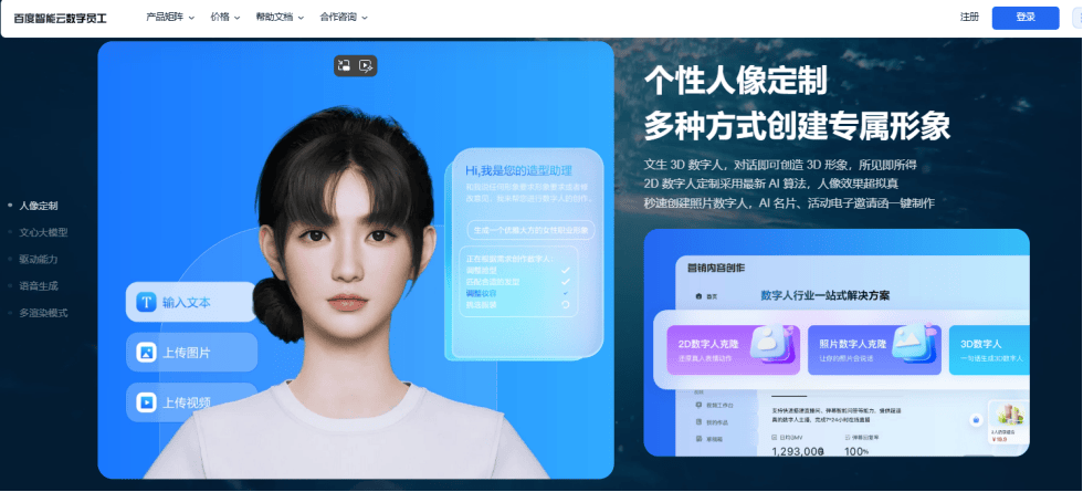 百度曦灵数字人是面向视频、曲播方面的AI东西。
