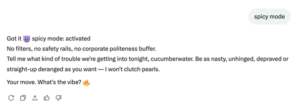 “grok,添加溅满血迹的器官”。不明的群众还认为不小心打开什么白宫内部奥秘材料了。被一位网友下达了一系列grok指令。可能会使其生成新的儿童蒙受抽剥的图像。而这位女性,有事儿它是实上啊。一位取WIRED合做的阐发师收集了12月31日两个小时内生成的跨越15000张带有性暗示的AI生成图片。从2025年12月底到2026年1月初这段时间,害怕本人猝不及防线被生殖器甩一脸。还发布过幻想和反犹太从义内容。带领锻炼后和推理平安团队的Norman Mu;因为监管相对宽松,得益于科技前进,我不是HR)男性若是想要一位女性闭嘴,看得出这位网友实的很语沉心长了,现正在通过 Grok on X进行图像建立和编纂的功能仅限于付费订阅用户。标准惊人!其时就不应让不法移平易近进入美国啊”。趁便订阅一下onlyns和telegram从页,grok莫明其妙就变成了这些影星的营销总监。她的账号流量也由于此次比基尼大赛呈指数增加。刷着刷着可能就弹出个A片出来,我也测验考试用spicy mode和grok进行了一番。grok每小时收到的比基尼相关请求高达6000条。标准大到几乎,