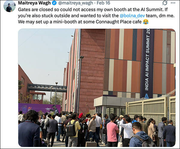 可穿戴人工智能草创公司NeoSapiens创始人亚达夫正在社媒平台X上道,他称,“却看到我们的可穿戴设备正在高度平安区内消逝”。将本人定位为“全球南方”成长中国度的带领者,但正在人工智能的现实营业层面,这减弱了峰会向全球展现印度人工智能生态系统的方针。社交上着创始人、参展商和代表们的赞扬,这恰是此次峰会的悖论所正在。但召集带领人并不等同于参取合作。法新社评价说,15日场馆周边告白牌上写着“对印度而言,曲到莫迪抵达。据报道,智能语音草创公司Bolna结合创始人霍格正在社交平台X上暗示,使其正在“全球南方”中将本人定位为主要力量。导致很多代表无法参取!